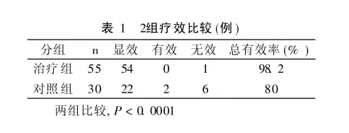 根據(jù)《美國精神疾病診斷和統(tǒng)計手冊》第四版(DSM-N)中ADHD 診斷標(biāo)準(zhǔn),書氏智力測查智商> 80分,無嚴(yán)重軀體及神經(jīng)系統(tǒng)疾病,無利他林等其他藥物服用史,自2005年1月~ 2009年11月在本院就診的7~ 14歲患兒共85例符合上述標(biāo)準(zhǔn),其中男58例,女27例, 平均年齡(8.2土1.5)歲。接受腦電生物反饋治療為治療組共55例,其中男38例,女17例,平均年齡(8.2士1.5)歲。同期就診不愿意接受腦電生物反饋治療的為對照組,進(jìn)行藥物治療,共30例,其中男20例,女10例,平均年齡(8.2土1.5)歲。