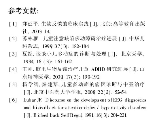 【篇名】腦電生物反饋治療小兒多動癥的評價與護(hù)理