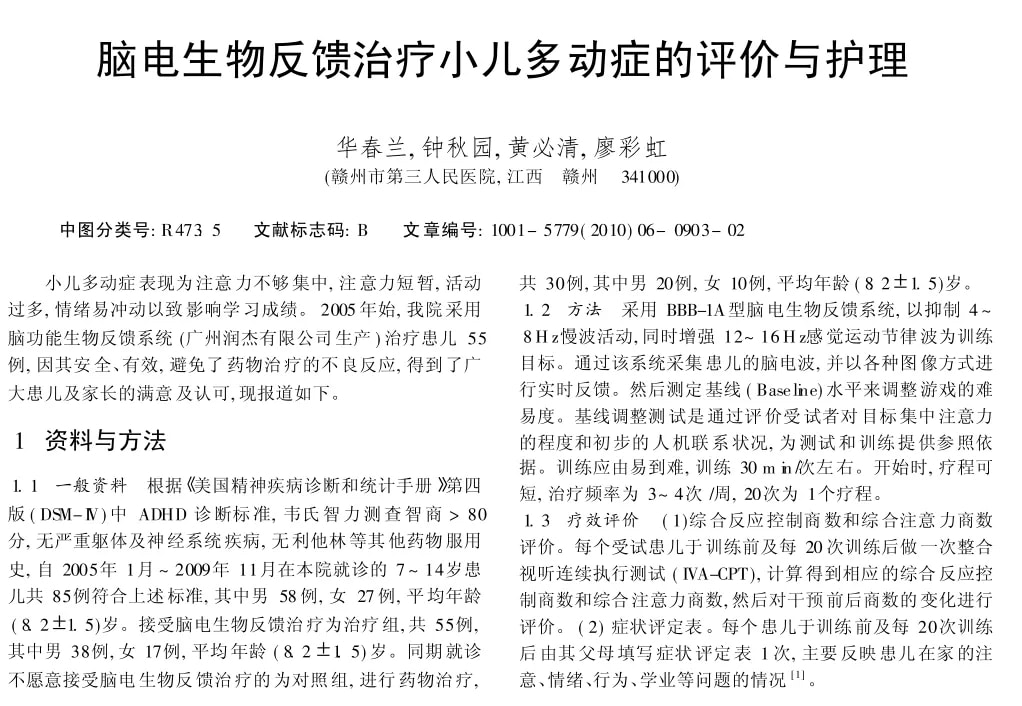 目前腦電生物反饋逐漸成為臨床輔助治療兒童多動癥的方法,越來越多醫(yī)院也在引入使用,今天分享一篇醫(yī)學(xué)文獻(xiàn),主要評價腦電生物反饋治療小兒多動癥的效果。
