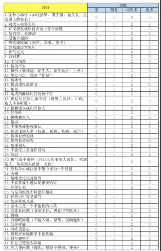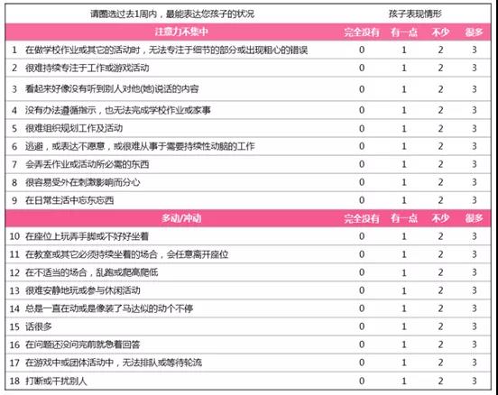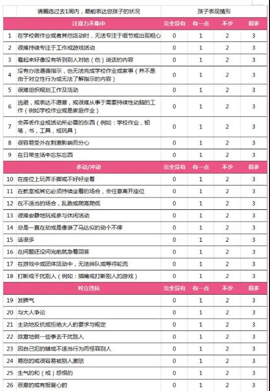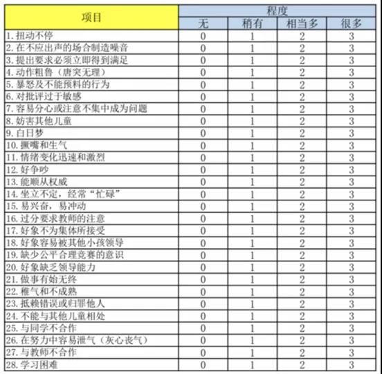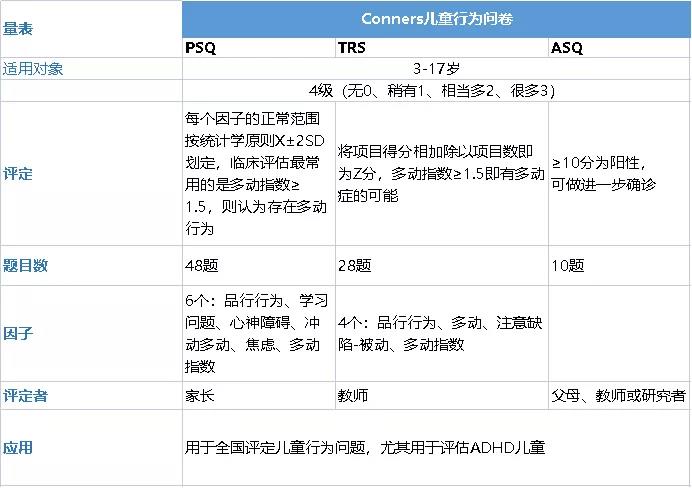 國(guó)內(nèi)外專家學(xué)者為使多動(dòng)癥患兒的病史標(biāo)準(zhǔn)化采集,臨床上常用的量表主要有:Conners 父母和教師評(píng)定量表、ASQ多動(dòng)癥診斷量表、SNAP-IV量表。接下來(lái)了解下這些量表吧~